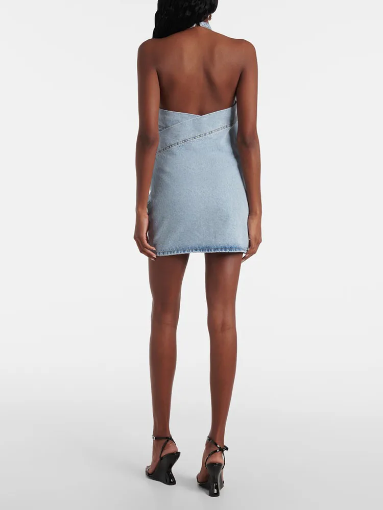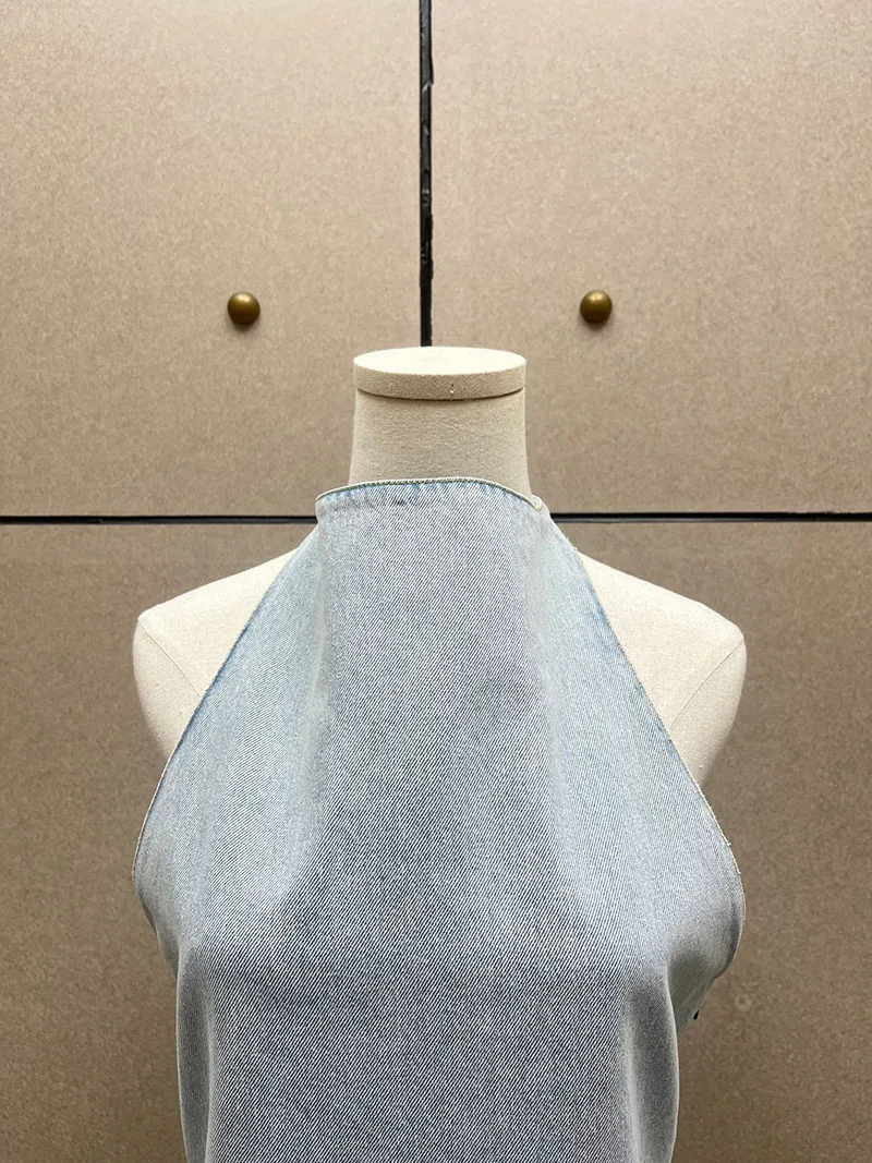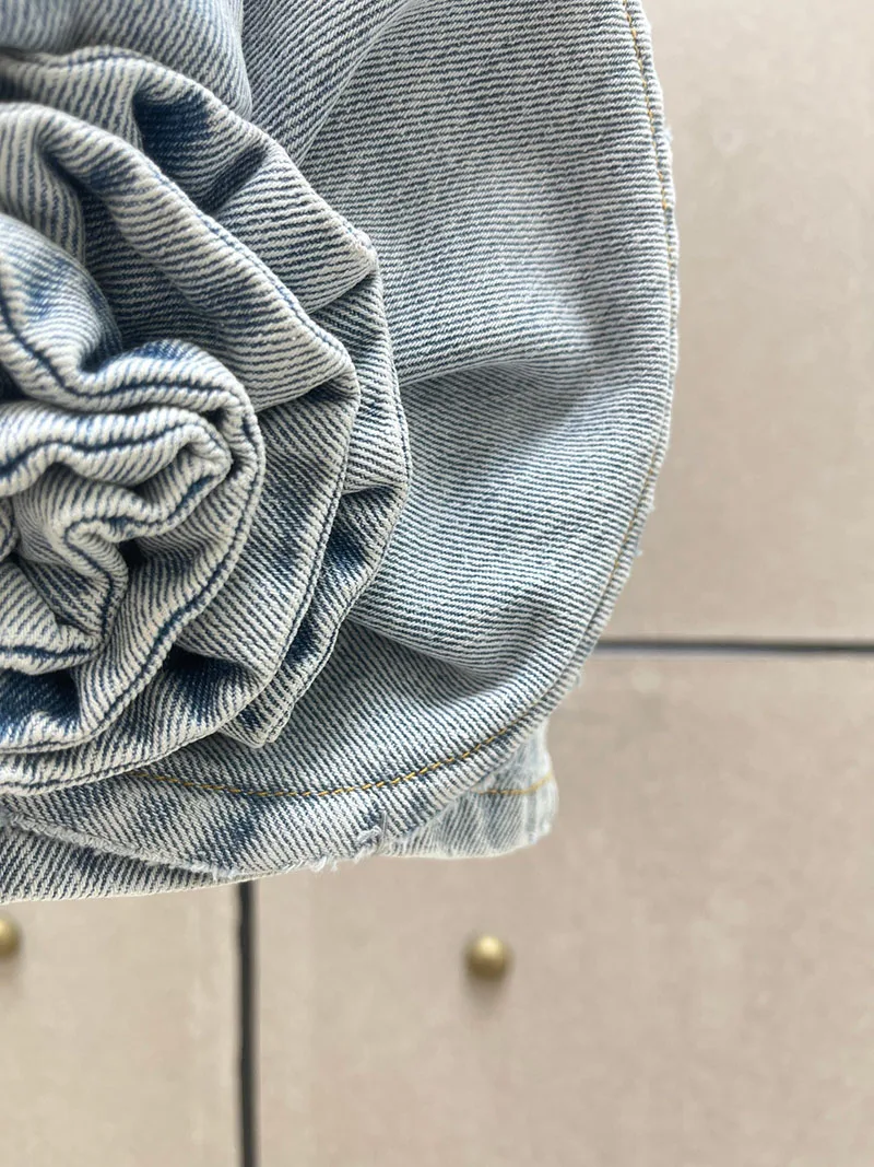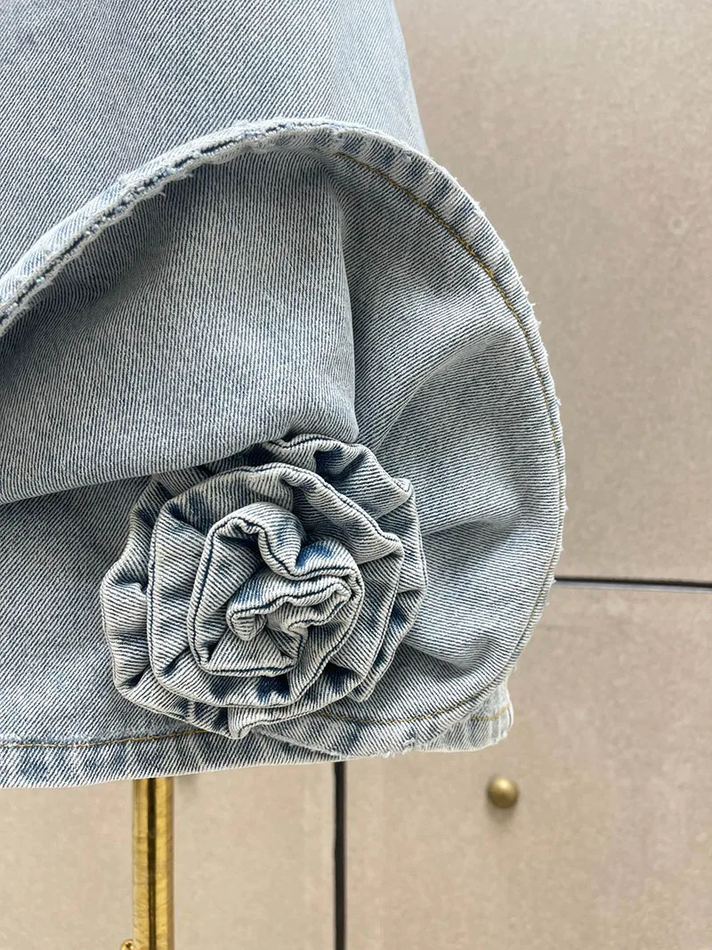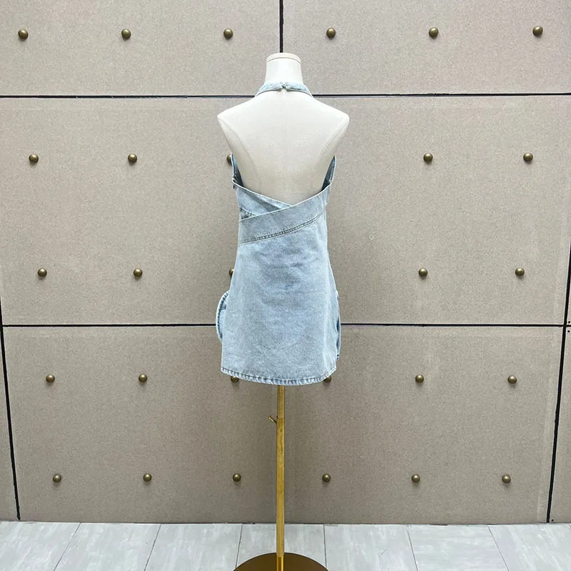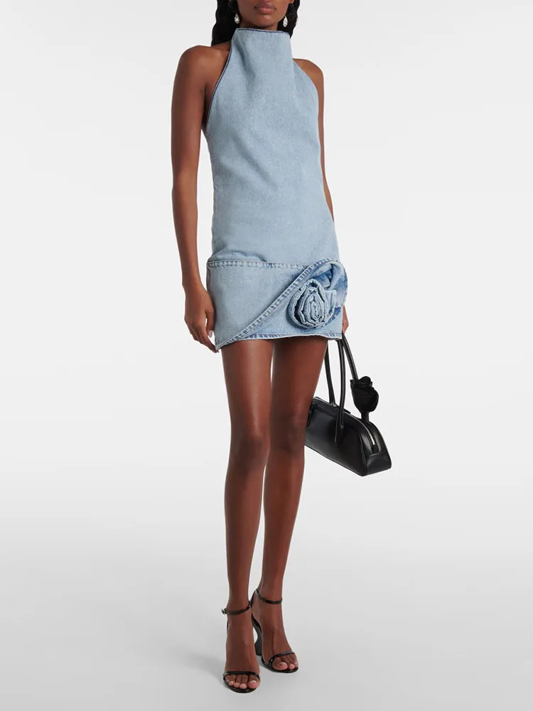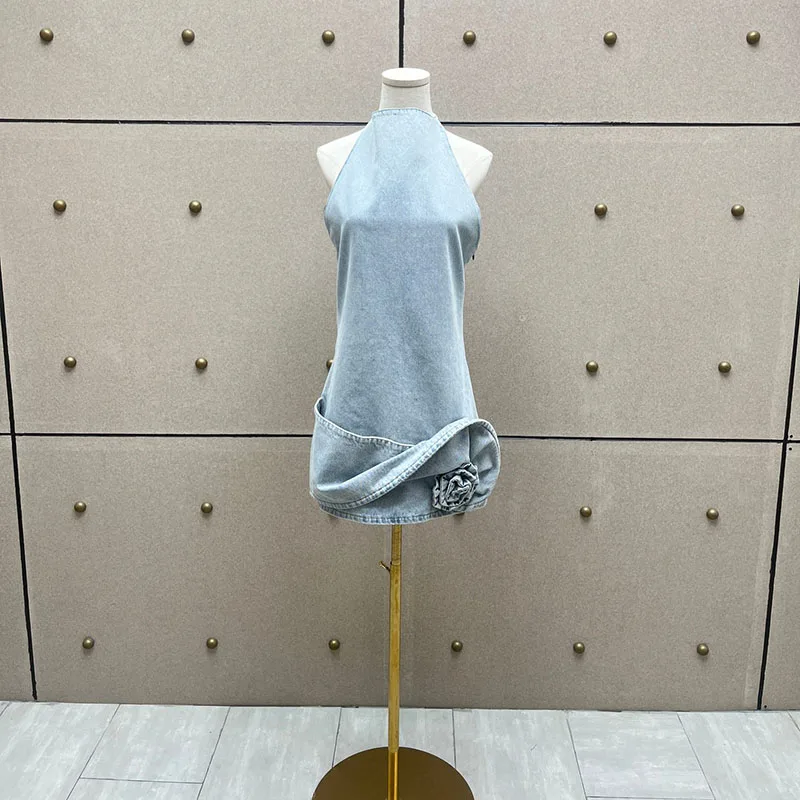 Woman clothing y2k spring and summer denim three-dimensional rose short dress hanging neck sleeveless cotton Dresses 2025 new